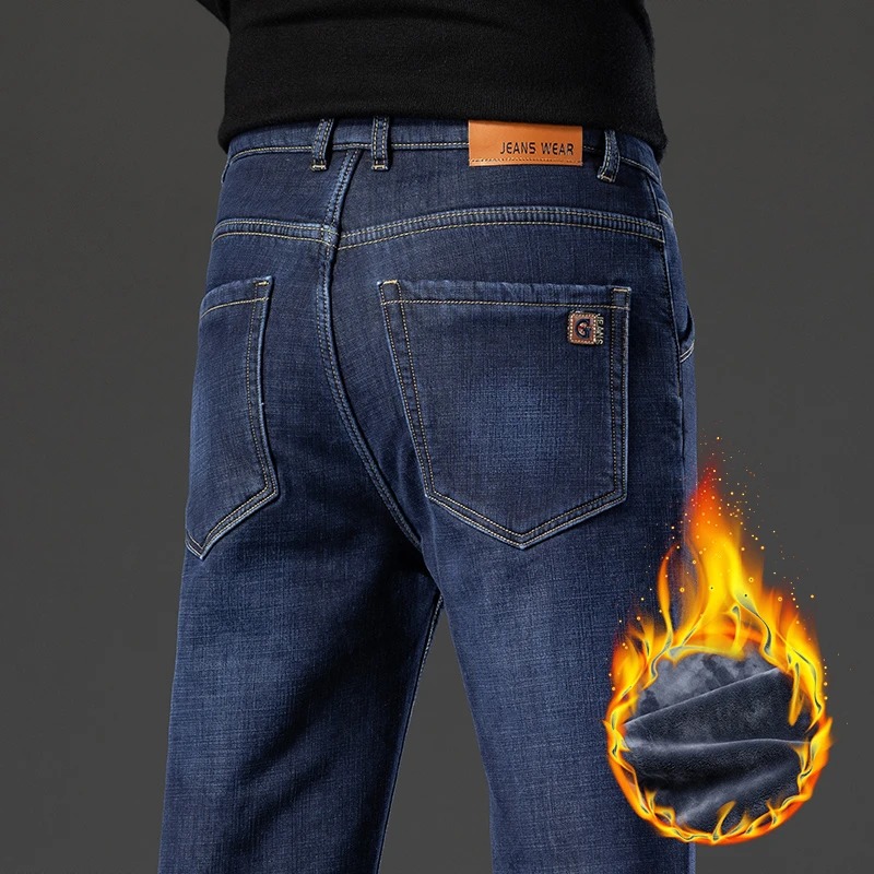 • 2024 Winter Jeans Men Straight Warm Thick Fleece-lined Denim Trouser Male Classic Business Casual Cowboy Pant Stretch Black Blue MCK512202